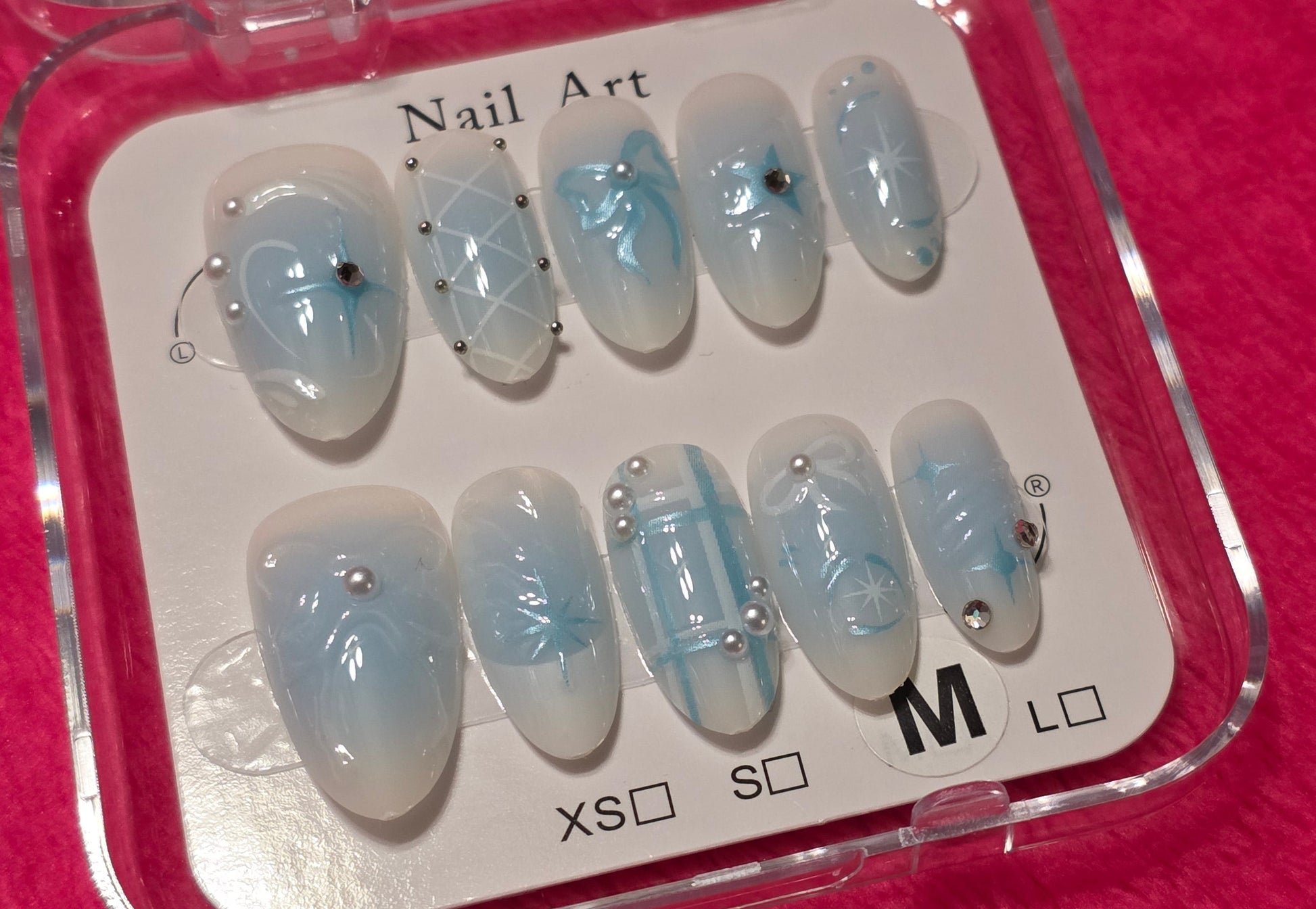 Each set contains 10 nails per stated size: Medium size. See chart for size reference. Nails come with nail kits, everything needed for application plus more and a free gift with every order!